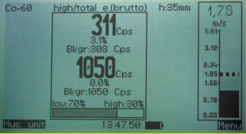 | 測量值顯示: | cps, Bq 或Bq/m 2 (4個關鍵核素 ) |