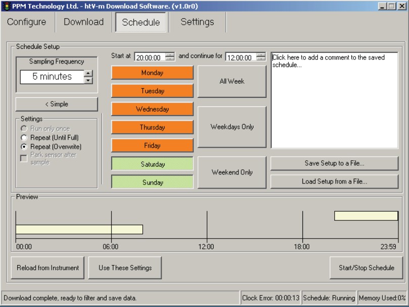 上圖是HTV-m日程表編輯器,用戶可以選擇需要測(cè)量的日期、開始時(shí)間以及持續(xù)時(shí)間。一旦設(shè)定好參數(shù),到預(yù)定時(shí)間,儀器會(huì)自動(dòng)開機(jī)取樣,并記錄測(cè)量結(jié)果。導(dǎo)出的數(shù)據(jù)為csv表格格式,十分便于統(tǒng)計(jì)趨勢(shì)。