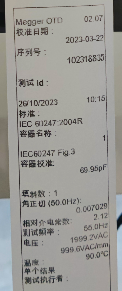 北京康高特儀器設(shè)備導(dǎo)讀:10月26日,錫林郭勒供電公司某變電站主變油樣介損測試。使用MEGGER OTD 絕緣油介損測試儀,設(shè)備將油升溫至90℃,然后使用2000VAC進(jìn)行測試。